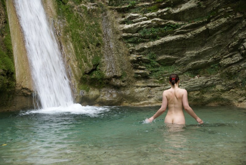 Bathing in the waterfall
