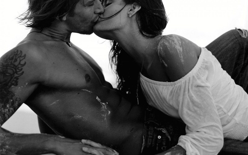 Hot and passionate kiss in a swimsuit