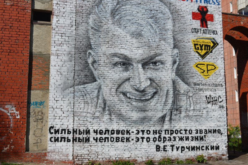 Turchinsky poster on the facade of the house in Voronezh