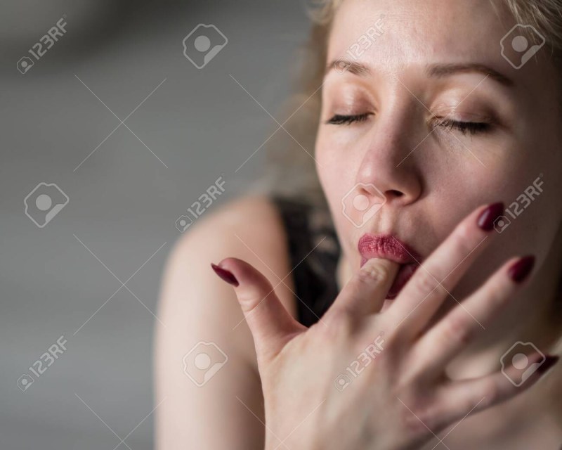 The blonde licks her finger