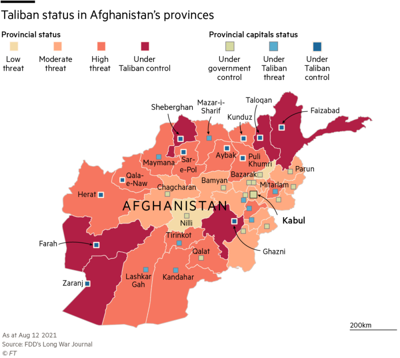 Taliban map in Afghanistan 2021