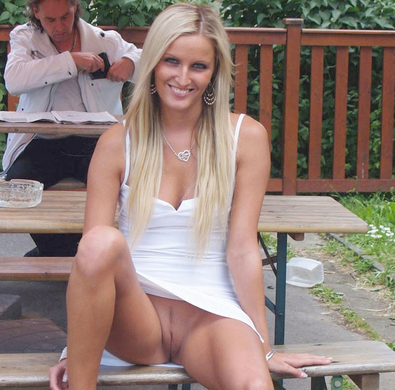 Without panties in a public place