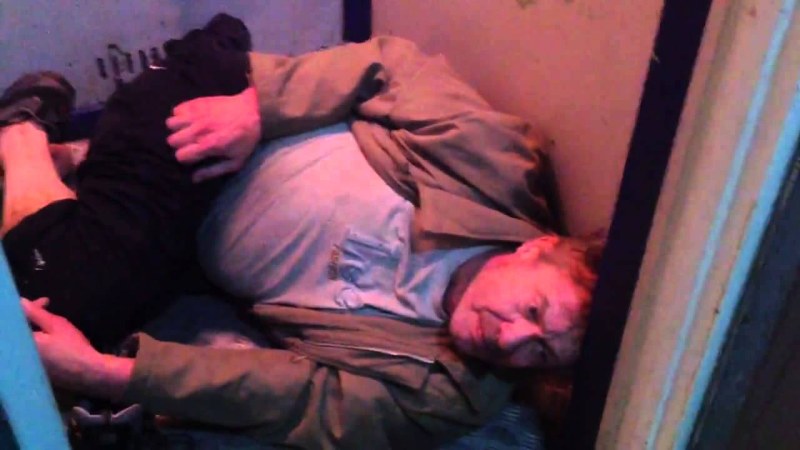 Drunk homeless on all fours