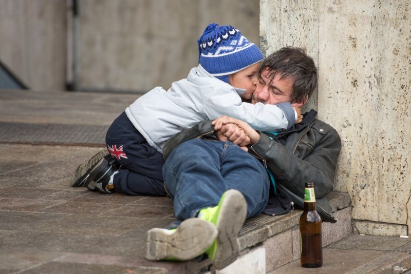 Dad Bomzh broke the tablet to the homeless son
