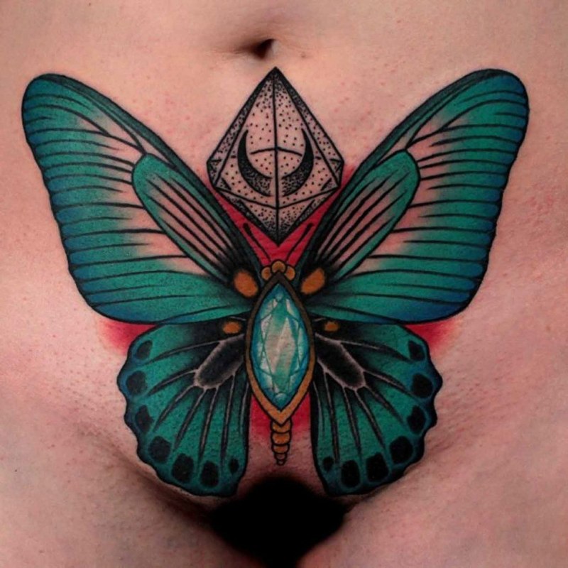 Tattoo butterfly on female genitalia